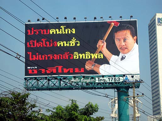 I can't say that I am sorry to see them go, even though I enjoyed practicing my Thai reading as I walked down the street. That is, except for the poster of Chuwit with a sledgehammer; I liked that one!
