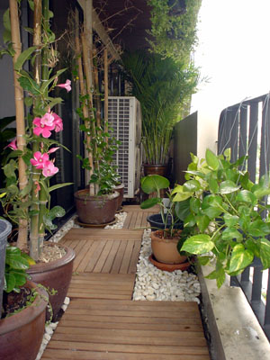 Nice upgraded Balcony. The pink flowers in the picture, I have them at home in Ca, LB. They are great all year round and very tolerable to heat and humidity,which fits the climate in BKK. We have heat wave in So.Cal this week from the remnant of Hurricane Emily in the Gulf. Swealtering hot!.