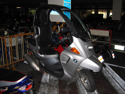 At every shopping center or parking lot there is always a big space for motorbikes. Even my school parking lot has one. After class today, I was about to get on my motorcycle to ride home when I noticed two unusual bikes.