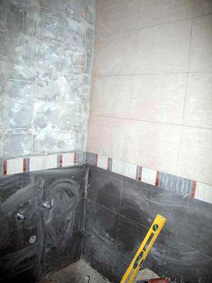They told us the tile would be done in one week (5 days). It's now been 8 days. Hopefully they will be able to finish the floor tomorrow. Then it will be time to install all the fixtures.