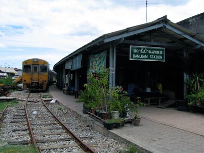 | The end of the line at Ban Laem station. The train shown here is waiting to take me to Mae Klong, Samut Songkram province. |