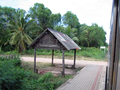 | One of the tiny stations along the way is nothing more than a rain shelter. A dirt road leads from the tracks to the village. |