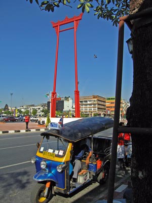Eventually I made it to the Giant Swing and the very large Wat Suthat. The Giant Swing (Sao Ching Cha) is one of the symbols of Bangkok. I had seen it before, but had never been inside the adjacent temple. Inside the temple is a very large Buddha image from the Sukothai period. But I thought the coolest part of the temple was the amazing colored paintings that covered the wall. I wish I knew more about the stories shown, like one scene of two elephants fighting a giant crab.