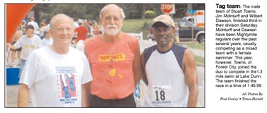 The local newspaper reported, "The male team of Jim McInturff, Wilbert Dawson and Stuart Towns, finished third in their division and probably took top honors as the oldest team in the race."